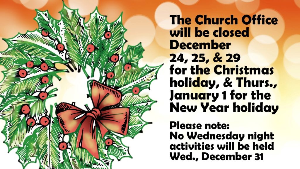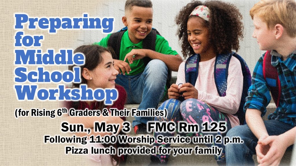 Preschool, children, youth, and adult Sunday School classes meet at 9:45.